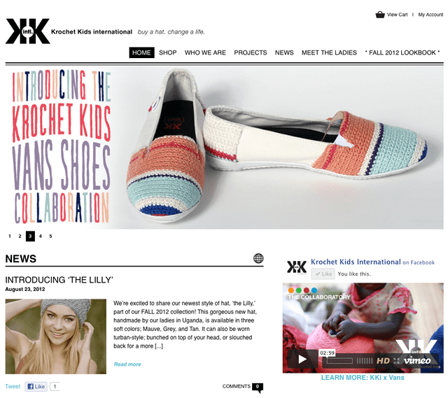Our favorite project so far has been working with Krochet Kids International back in the fall of 2010. We were particularly proud of the site we have developed for them. Their site includes custom post types and custom taxonomies, ecommerce, and social integrations.